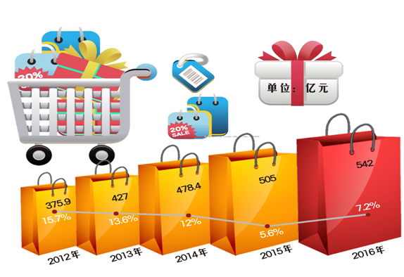 2012-2016年丹东市社会消费品零售总额及增长速度