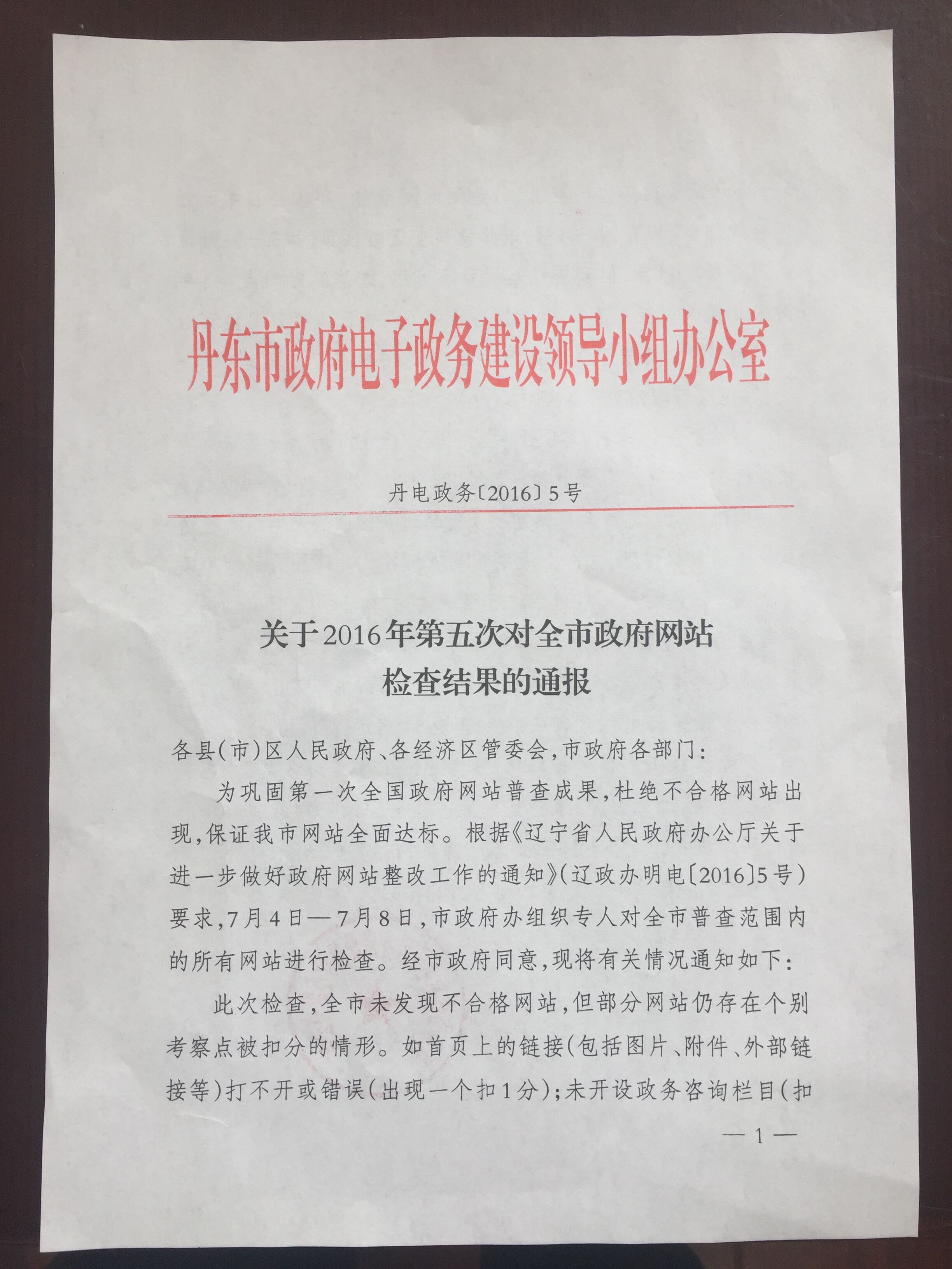 关于2016年第五次对全市政府网站抽查结果的通报