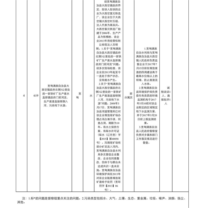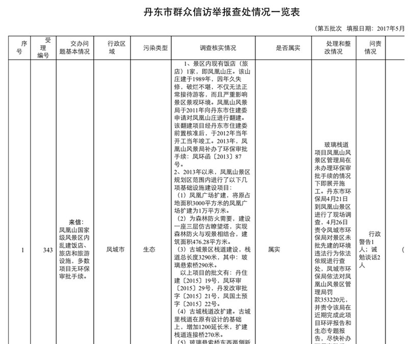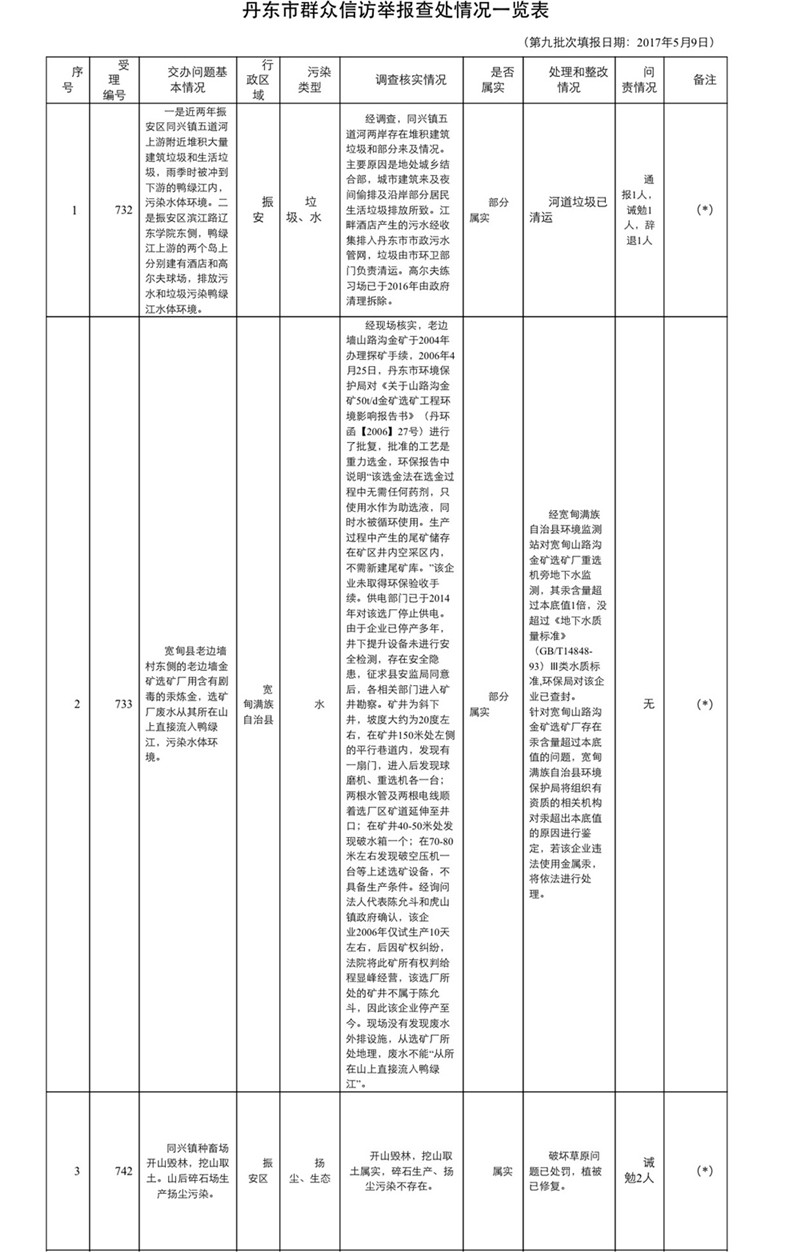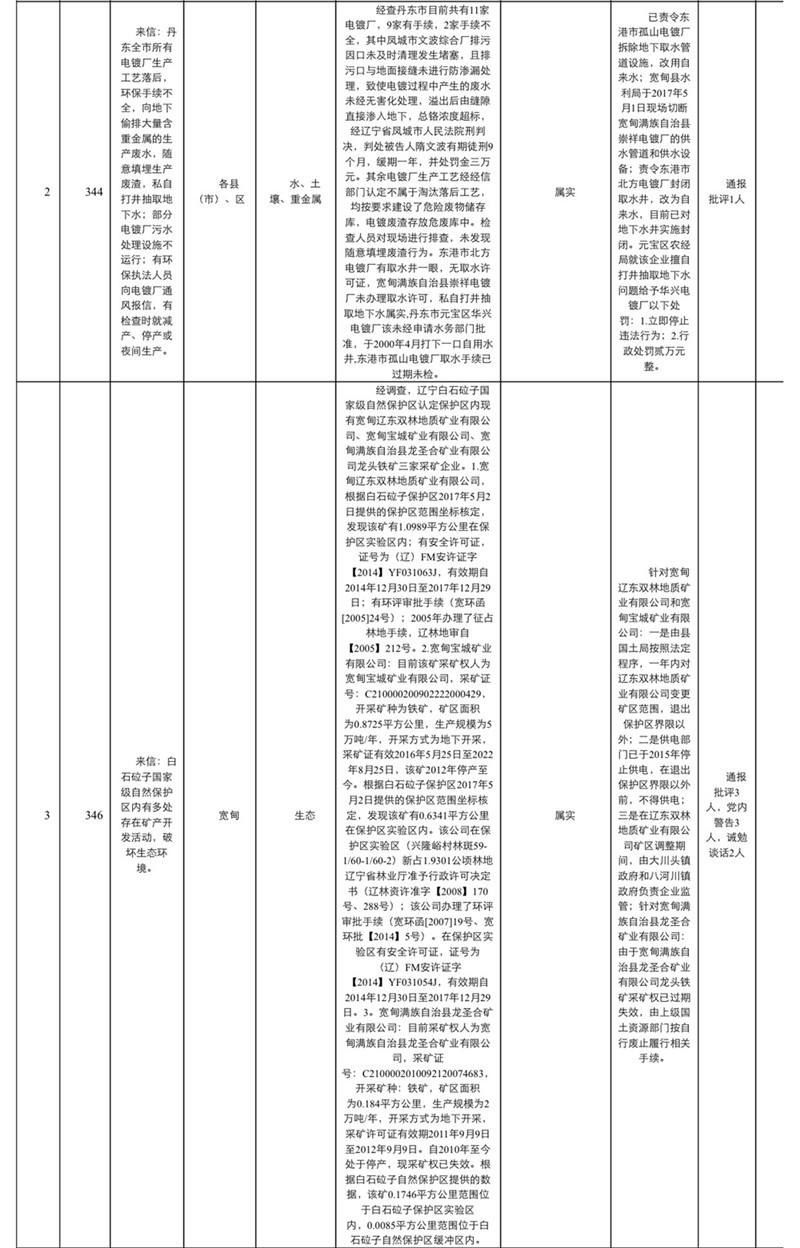 中央环境保护督察丹东市信访投诉问题办理情况通报
