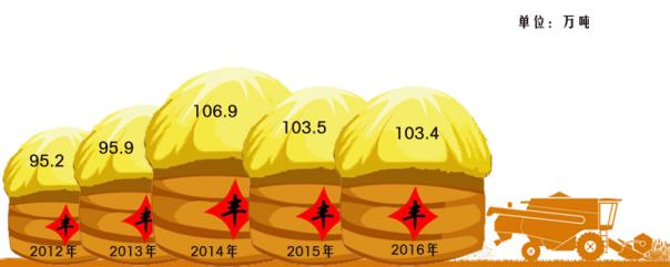 全年粮食总产量103.4万吨,比上年减产0.11万吨,继2014年和2015年后,连续三年跨越100万吨的台阶,创历史第三高产年。其中,玉米产量60万吨,与上年基本持平;稻谷产量39.5万吨,与上年持平;大豆产量1.15万吨,下降10.5%。经济作物中,油料产量1.36万吨,增长7.2%;烤烟产量0.8万吨,下降2%;水果(含瓜果类)产量28.2万吨,下降49.6%;蔬菜及食用菌产量74.1万吨,下降33.1%;草莓产量11.2万吨,下降64.5%;柞蚕茧产量2.08万吨,下降18.2%;板栗产量13万吨,增长24.7%。